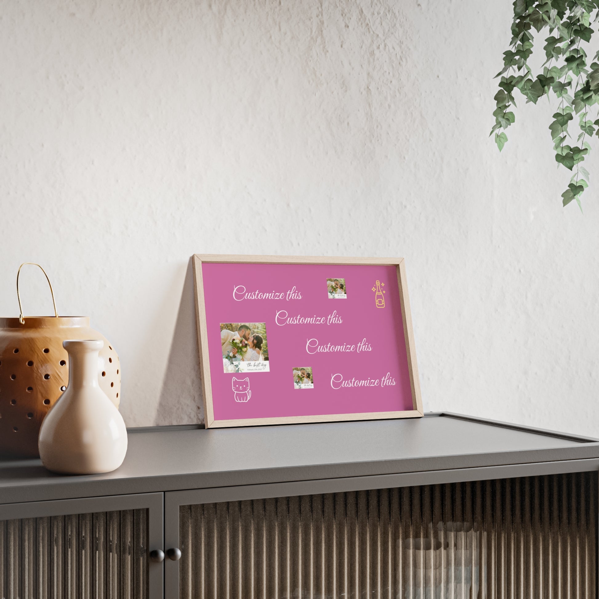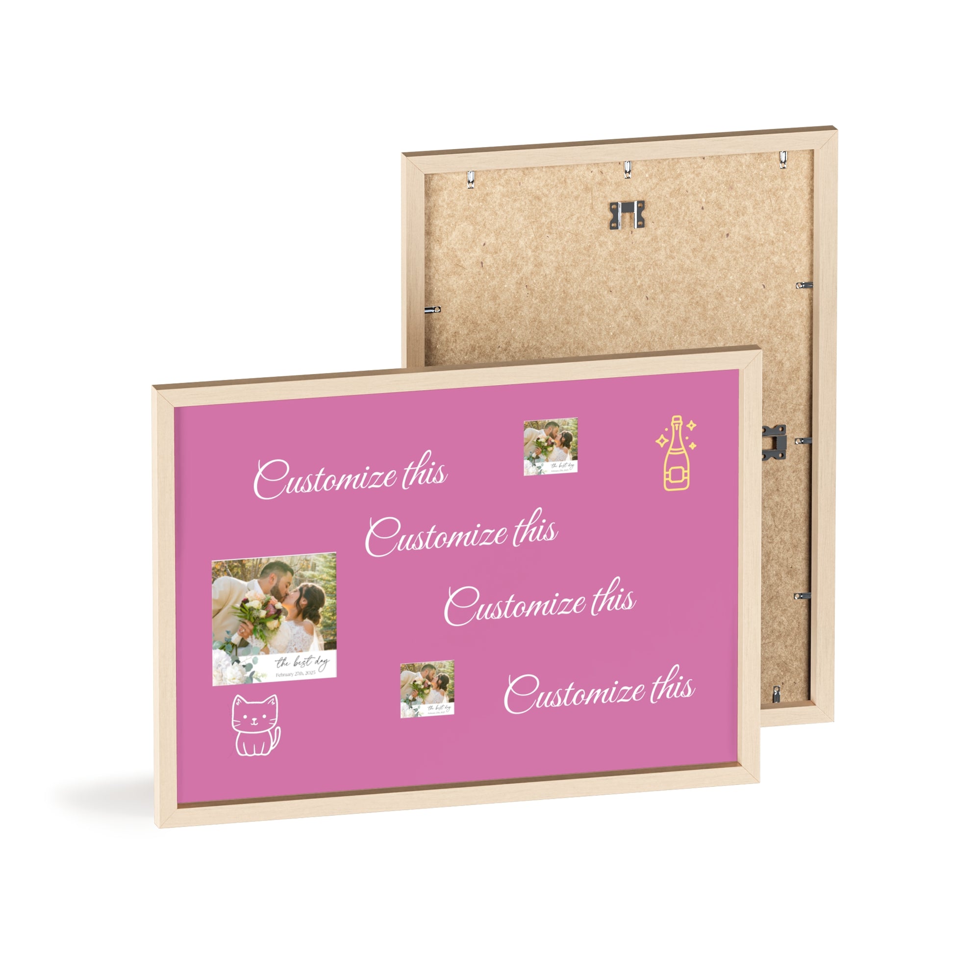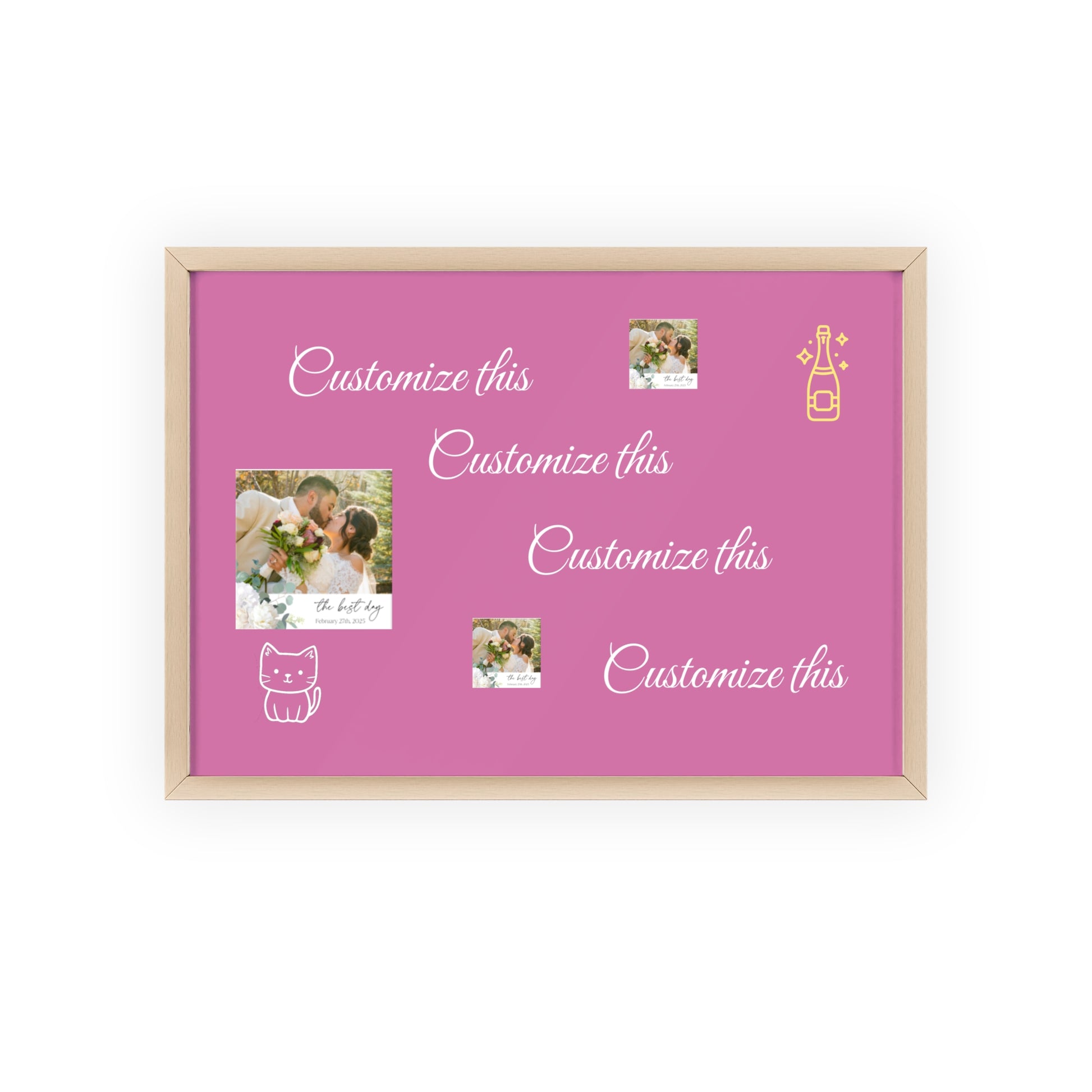 Transform your wedding venue with these stunning signs/pictures featuring beautifully crafted wooden frames. Designed to bring a pop of color and personality to any room, these posters are perfect for art lovers and decorators alike. With customizable elements, they’re a delightful addition to any personal collection or a charming surprise for your loved ones during the celebration.